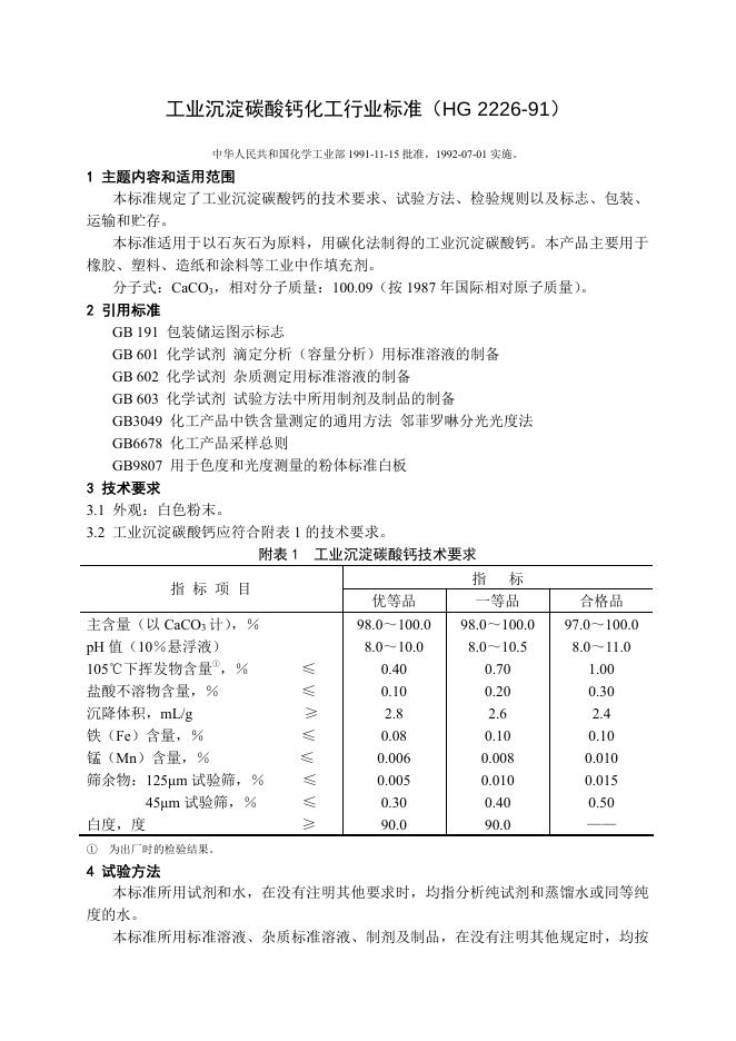 HG 2226-1991 工业沉淀碳酸钙