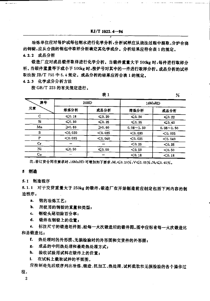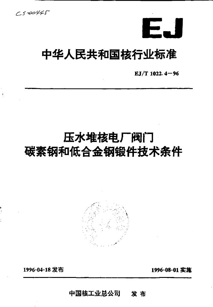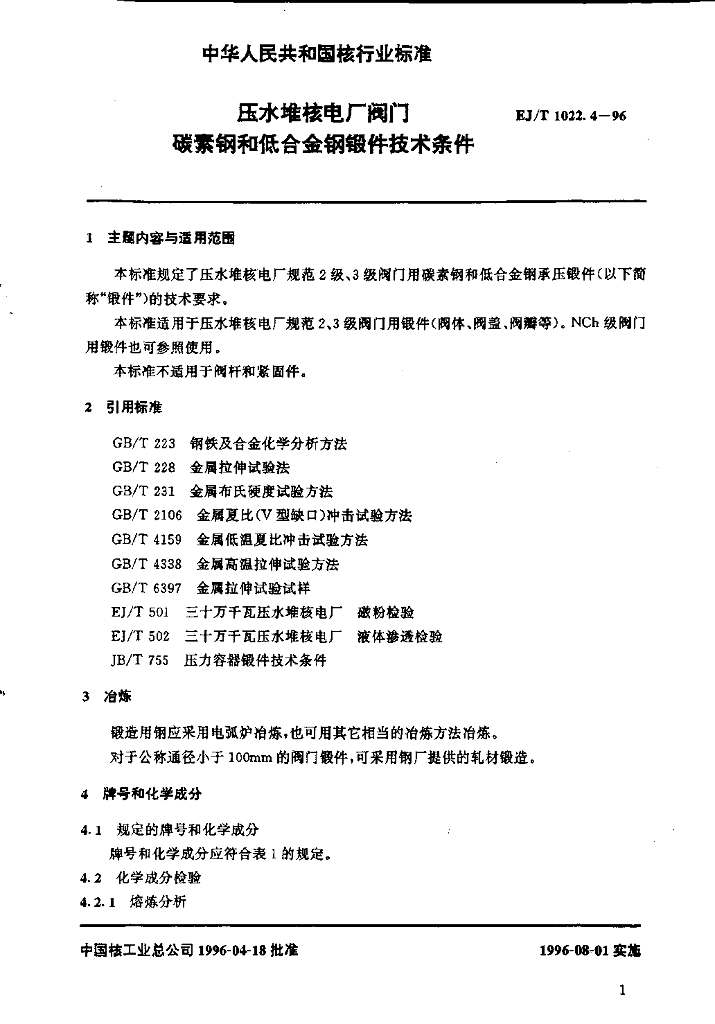 EJ/T 1022.4-1996 压水堆核电厂阀门 碳素钢和低合金钢锻件技术条件