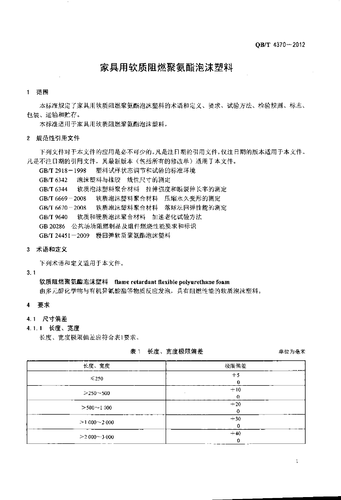 QB/T 4370-2012 家具用软质阻燃聚氨酯泡沫塑料