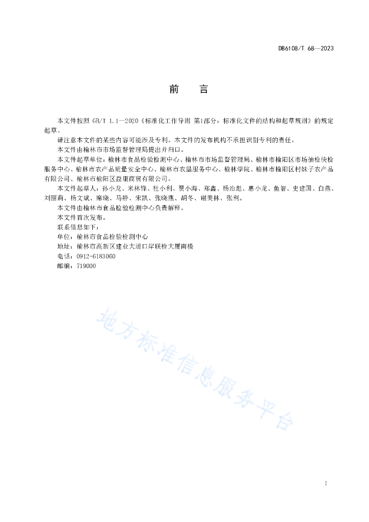 榆林市食品检验检测中心、榆林市市场监督管理局、榆林市榆阳区市场抽检快检服务中心、榆林市农产品质量安全中心、榆林市农垦服务中心、榆林学院、榆林市榆阳区村妹子农产品有限公司、榆林市榆阳区益康商贸有限公司