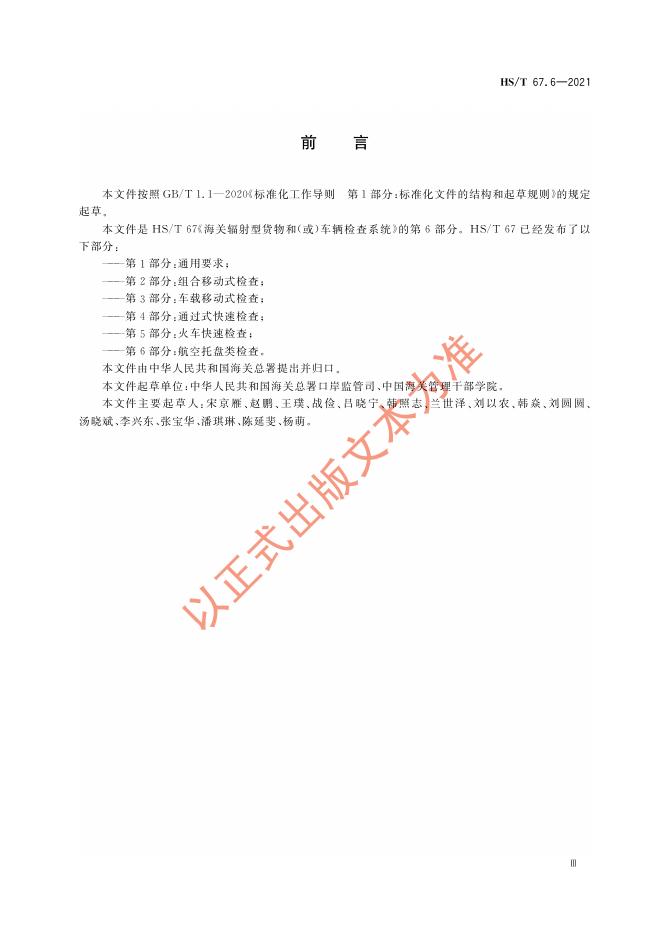 HS/T 67.6-2021 海关辐射型货物和(或)车辆检查系统 第6部分:航空托盘类检查