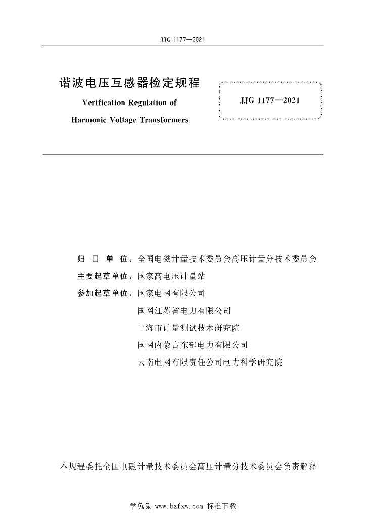 国家高电压计量站、国家电网有限公司、国网江苏省电力有限公司、上海市计量测试技术研究院、国网内蒙古东部电力有限公司、云南电网有限责任公司电力科学研究院