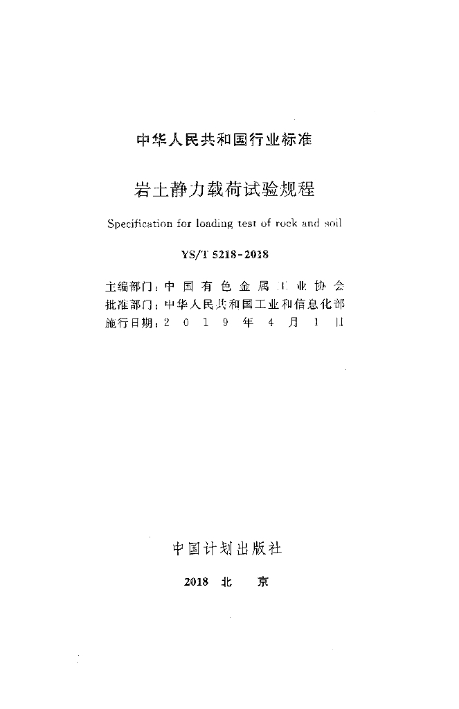 YS/T 5218-2018 岩土静力载荷试验规程