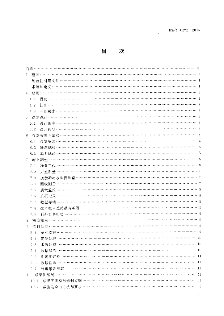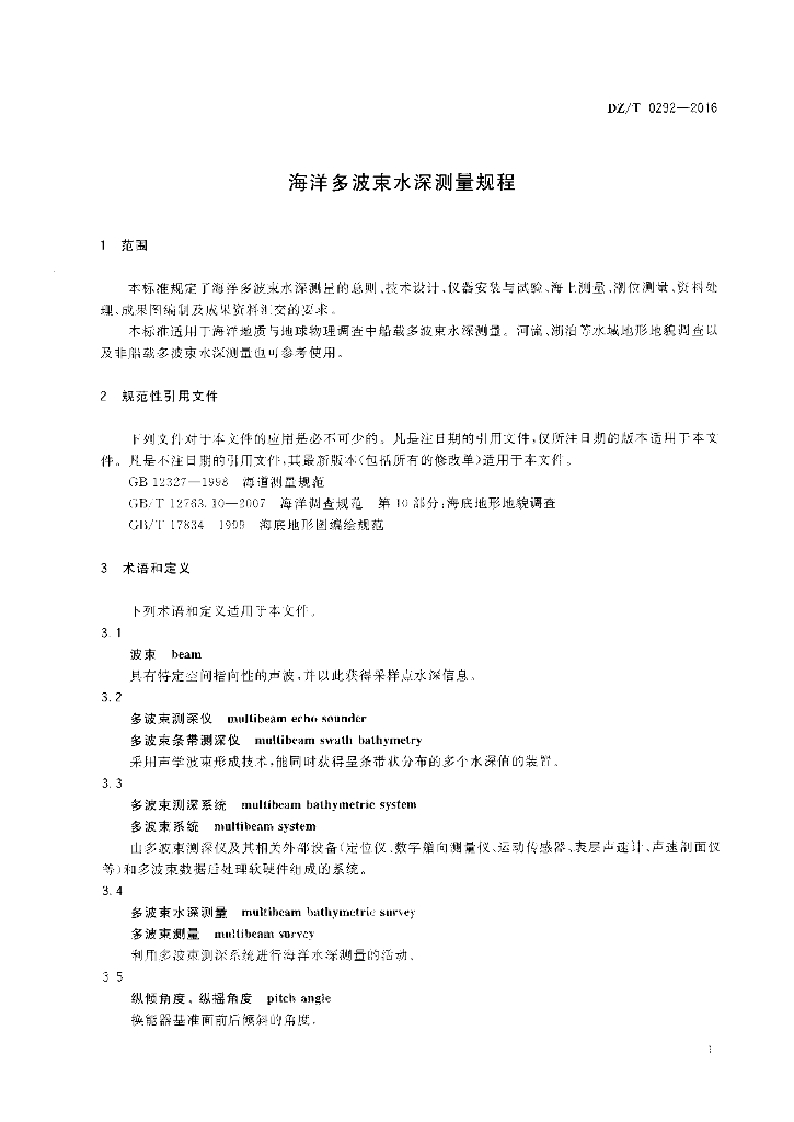 DZ/T 0292-2016 海洋多波束水深测量规程