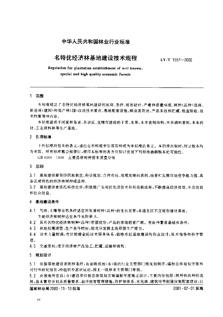 LY/T 1557-2000 名特优经济林基地建设技术规程