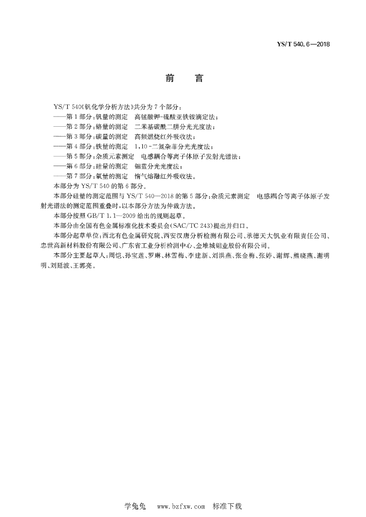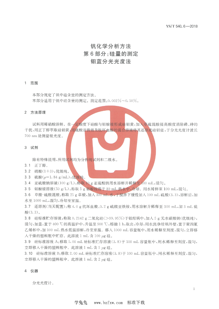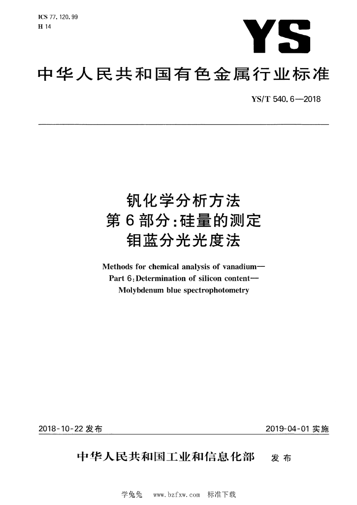 YS/T 540.6-2018 钒化学分析方法 第6部分:硅量的测定 钼蓝分光光度法