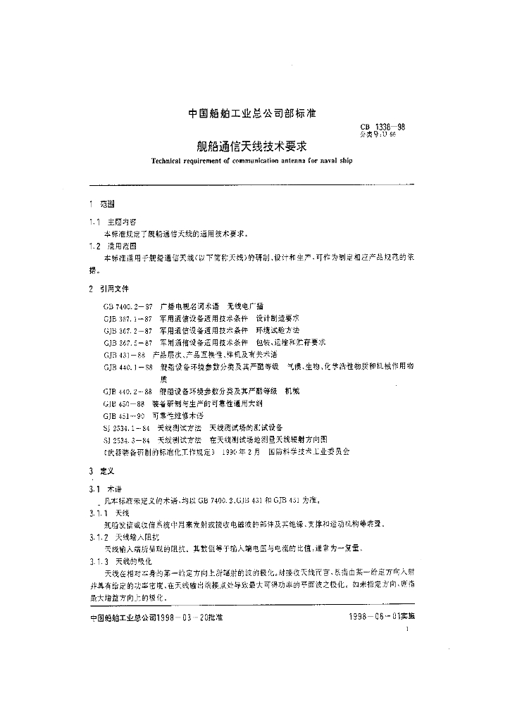 CB 1338-1998 舰船通信天线技术要求
