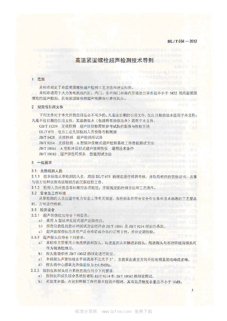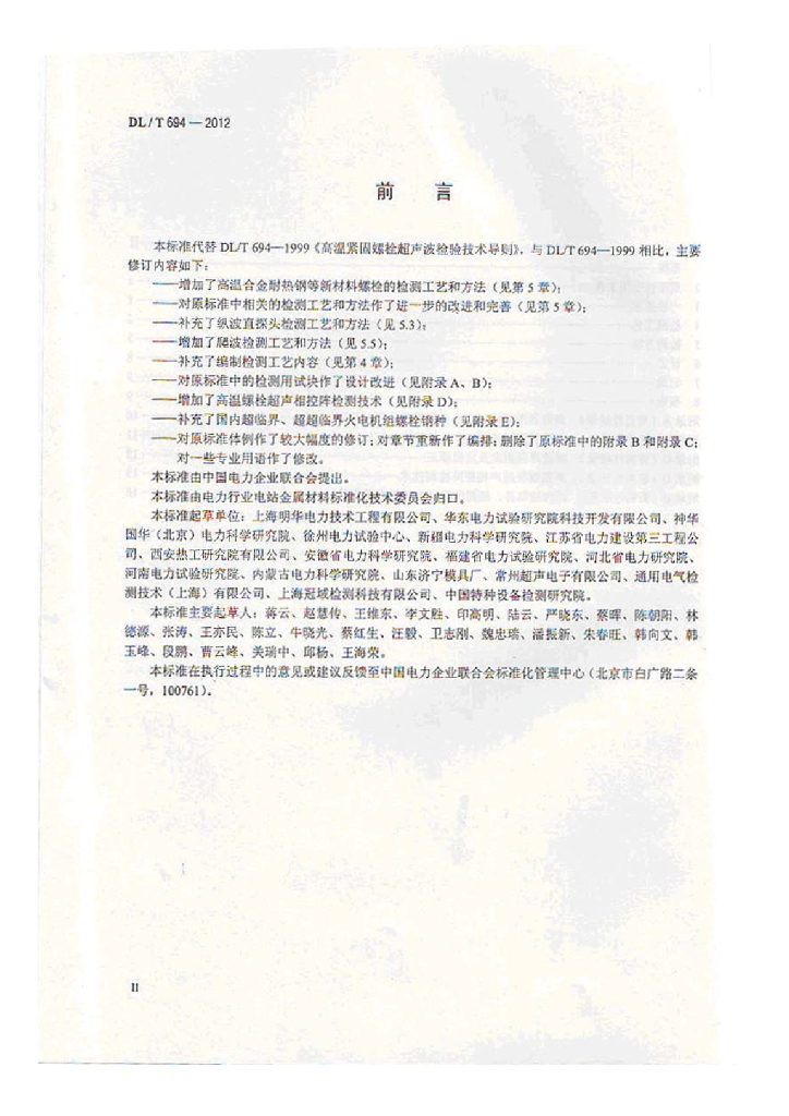 DL/T 694-2012 高温紧固螺栓超声波检测技术导则