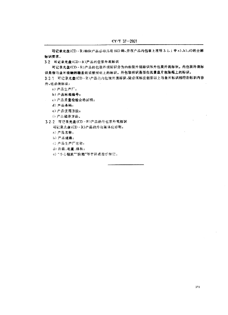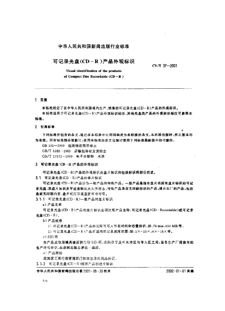 CY/T 37-2001 可记录光盘(CD-R)产品外观标识