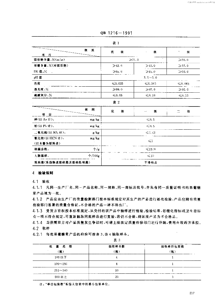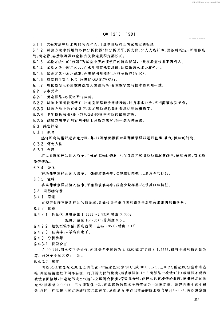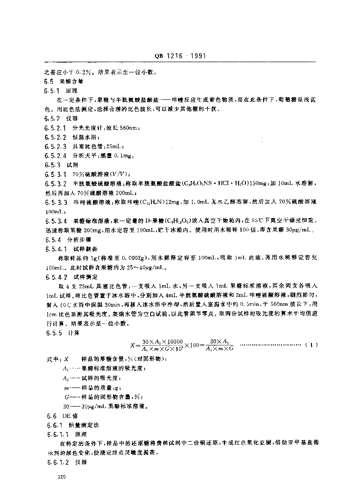 QB 1216-1991 果葡糖浆及其试验方法