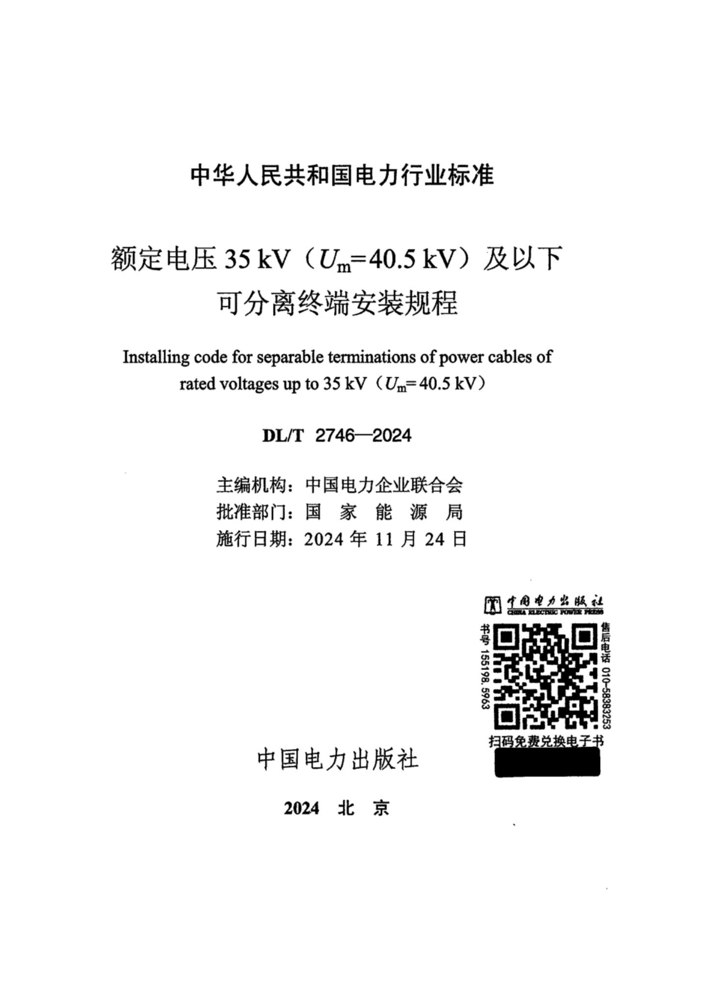 DL/T 2746-2024 额定电压35kV(Um=40.5 kV)及以下可分离终端安装规程