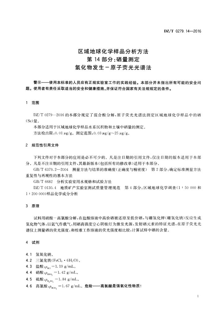 DZ/T 0279.14-2016 区域地球化学样品分析方法 第14部分:硒量测定氢化物发生-原子荧光光谱法