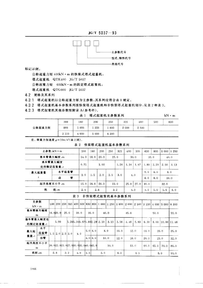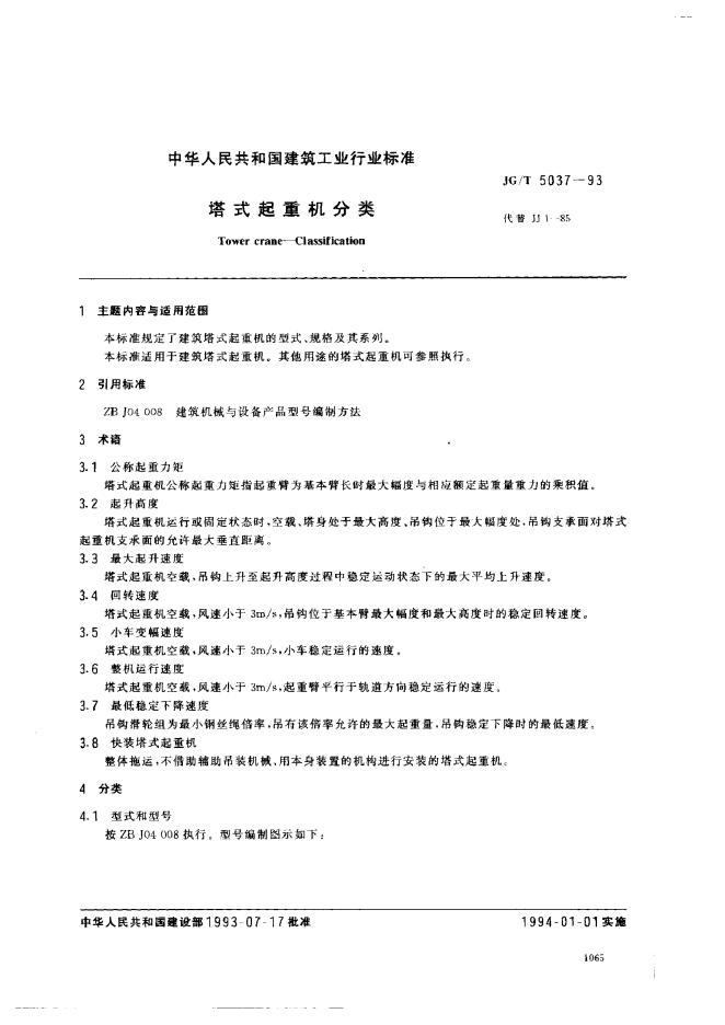 CJ/T 5037-1993 塔式起重机分类