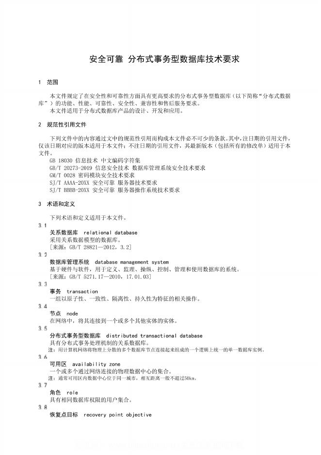 SJ/T 11938-2024 安全可靠 分布式事务型数据库技术要求