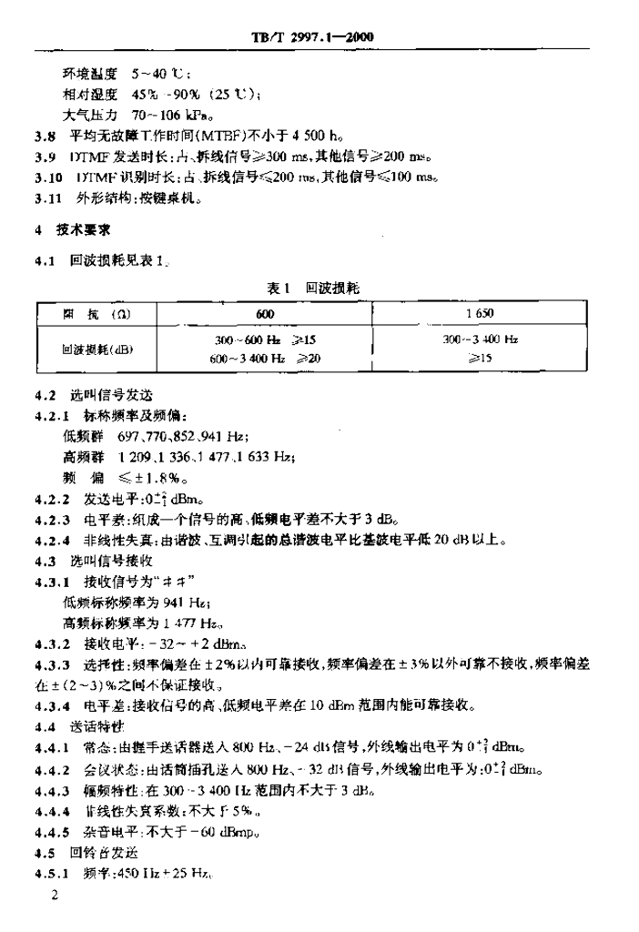 TB/T 2997.1-2000 铁路程控共线电话设备 主控机技术要求及试验方法