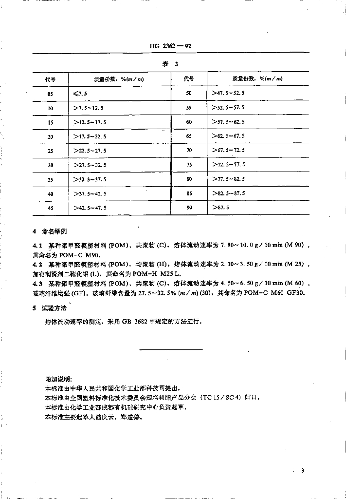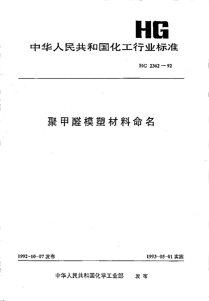 HG/T 2362-1992 聚甲醛模塑材料命名