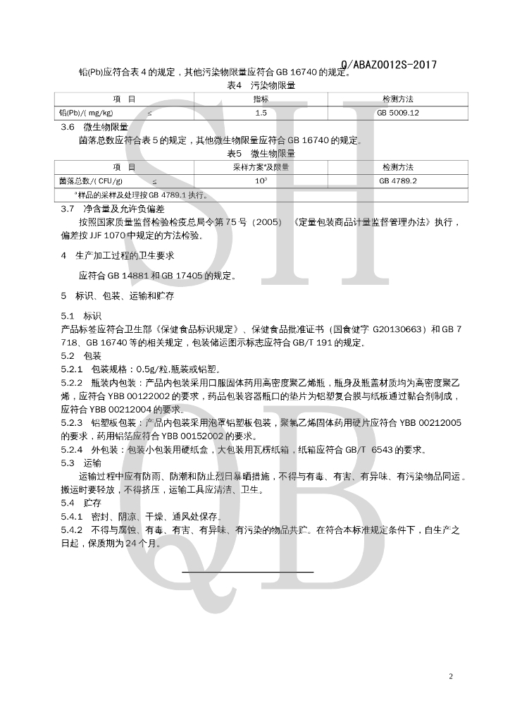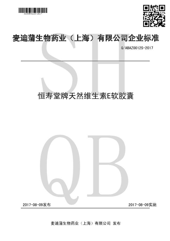 Q/ABAZ 0012S-2017 恒寿堂牌天然维生素E软胶囊