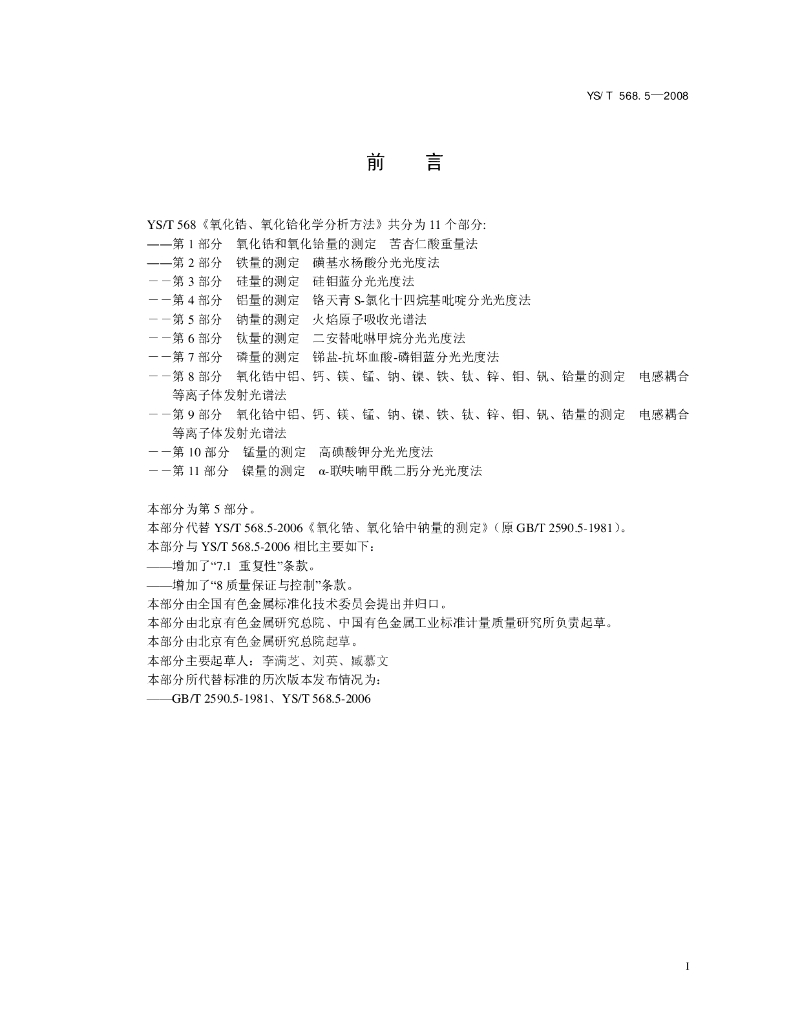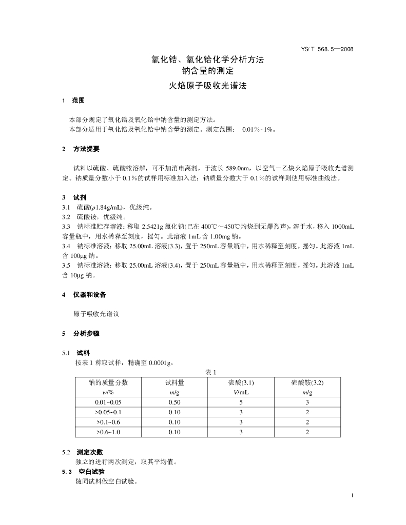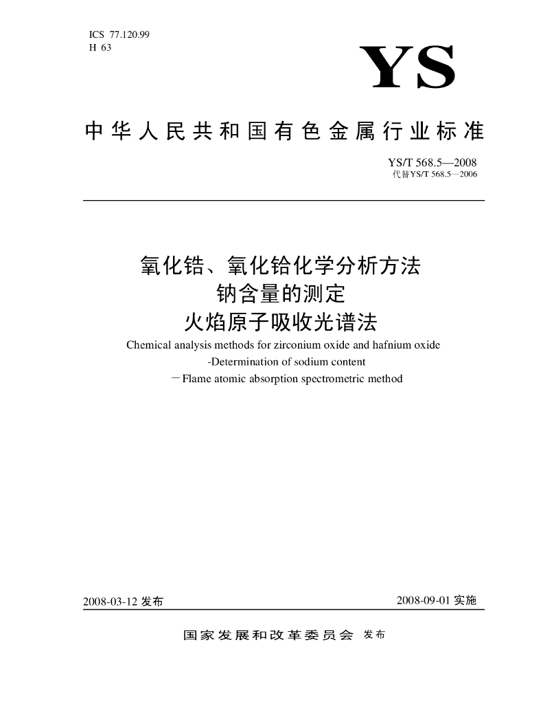YS/T 568.5-2008 氧化锆、氧化铪化学分析方法 钠含量的测定 火焰原子吸收光谱法