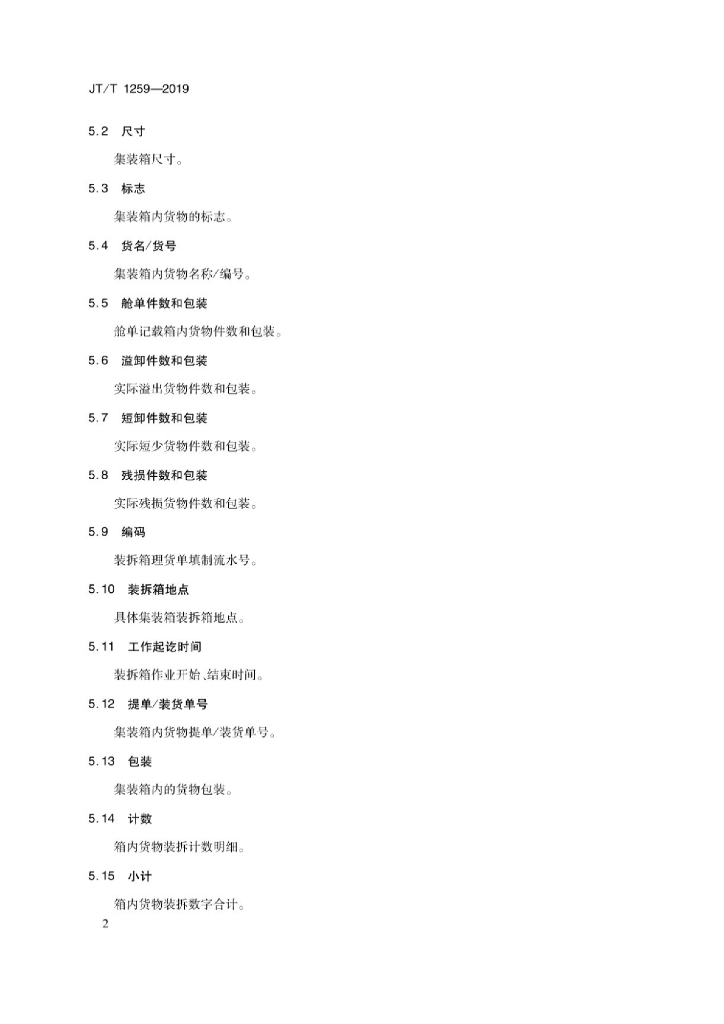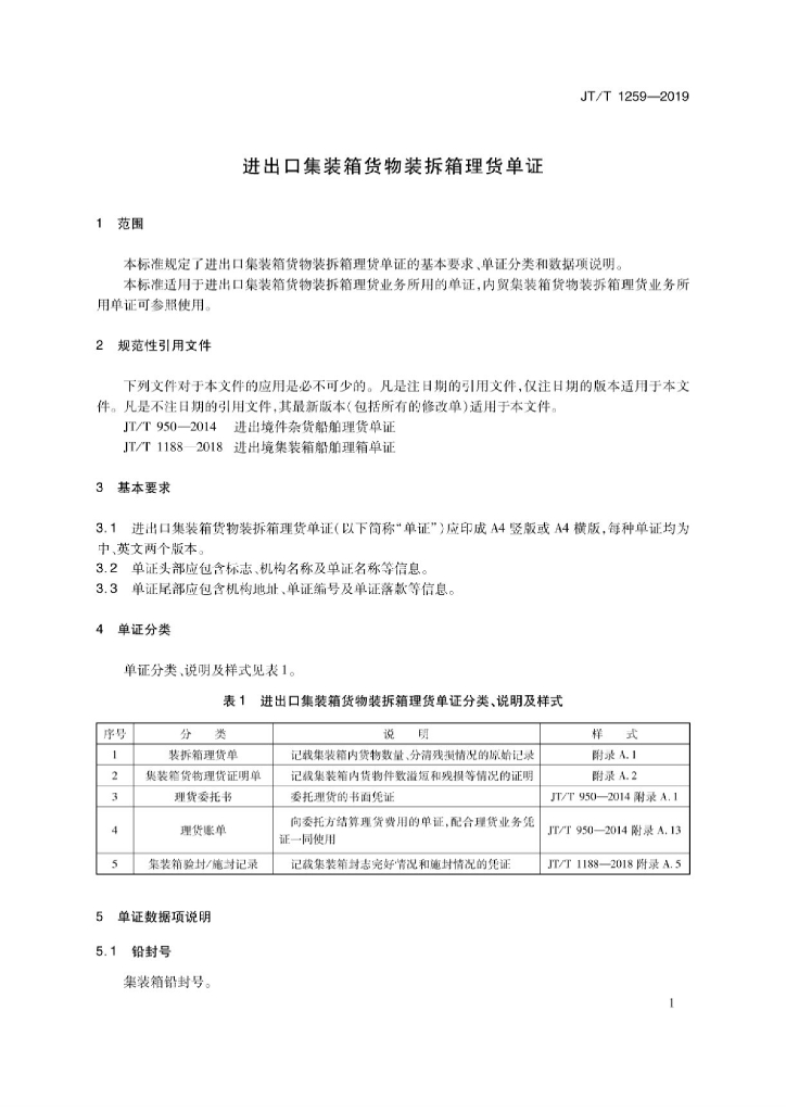 JT/T 1259-2019 进出口集装箱货物装拆箱理货单证
