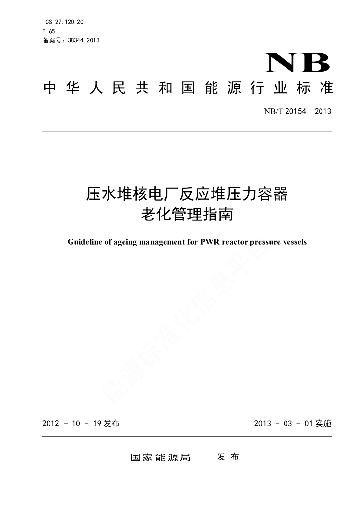 NB/T 20154-2012 压水堆核电厂反应堆压力容器老化管理指南