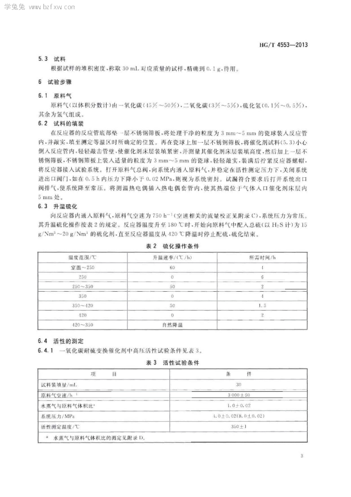 HG/T 4553-2013 一氧化碳耐硫变换催化剂中高压活性试验方法