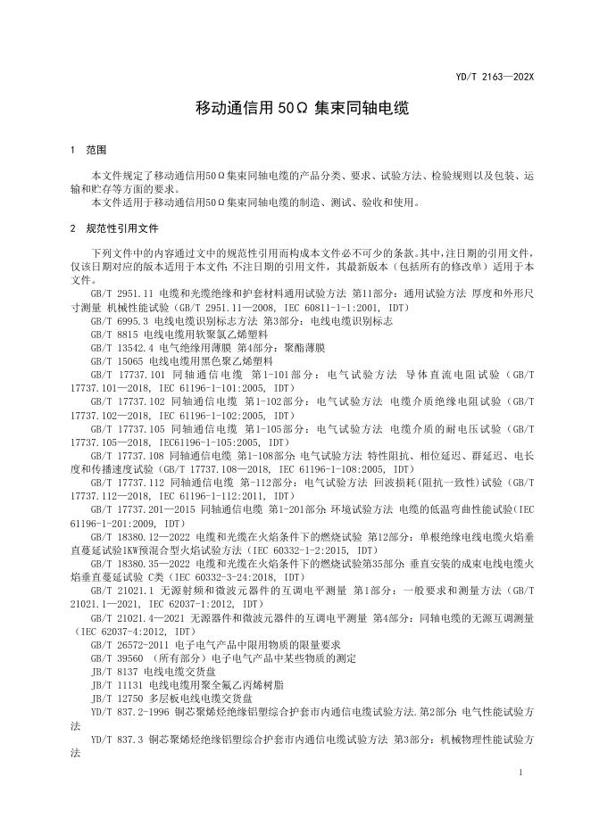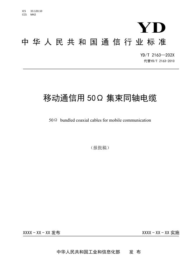 YD/T 2163-2024 移动通信用50Ω集束同轴电缆
