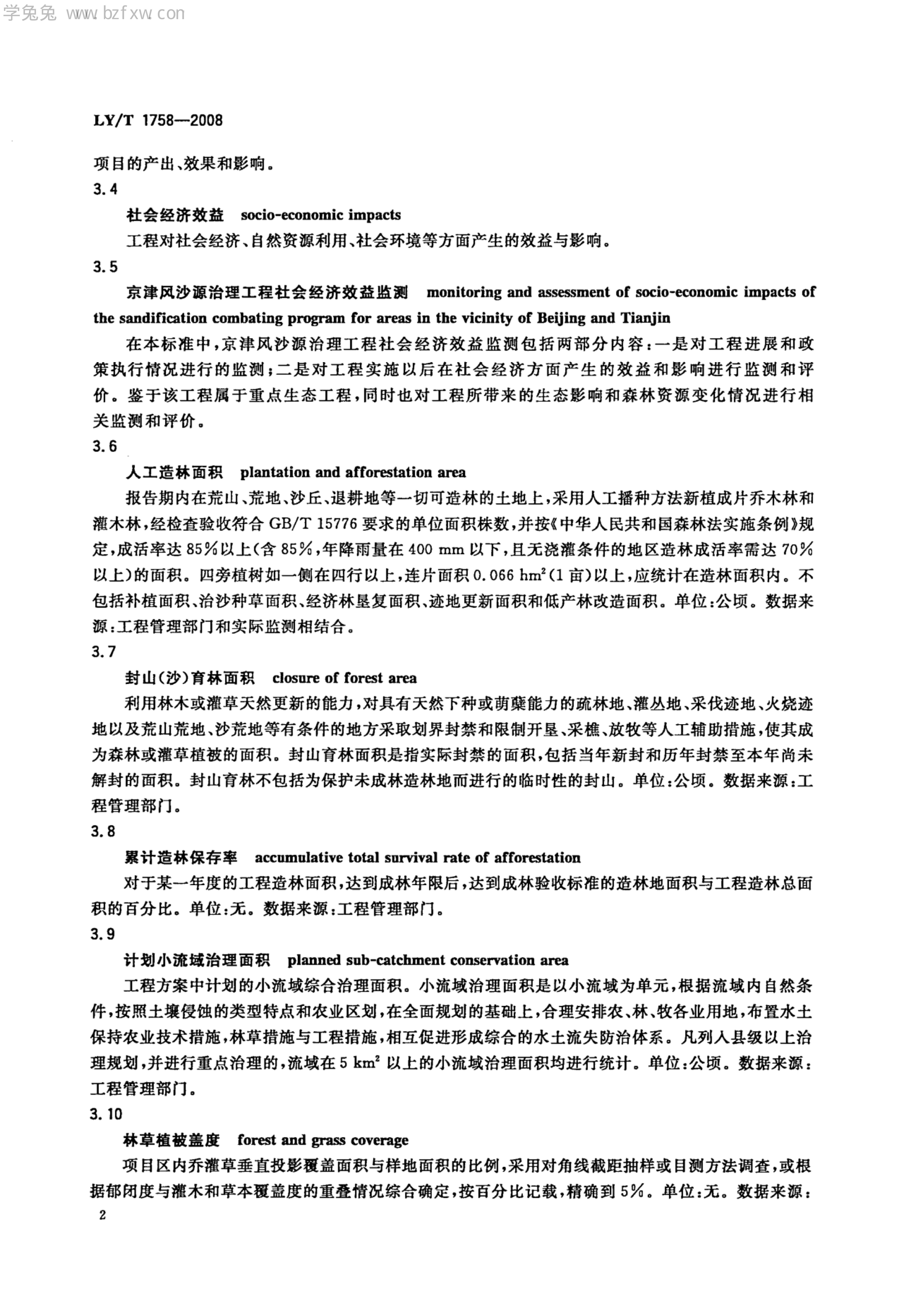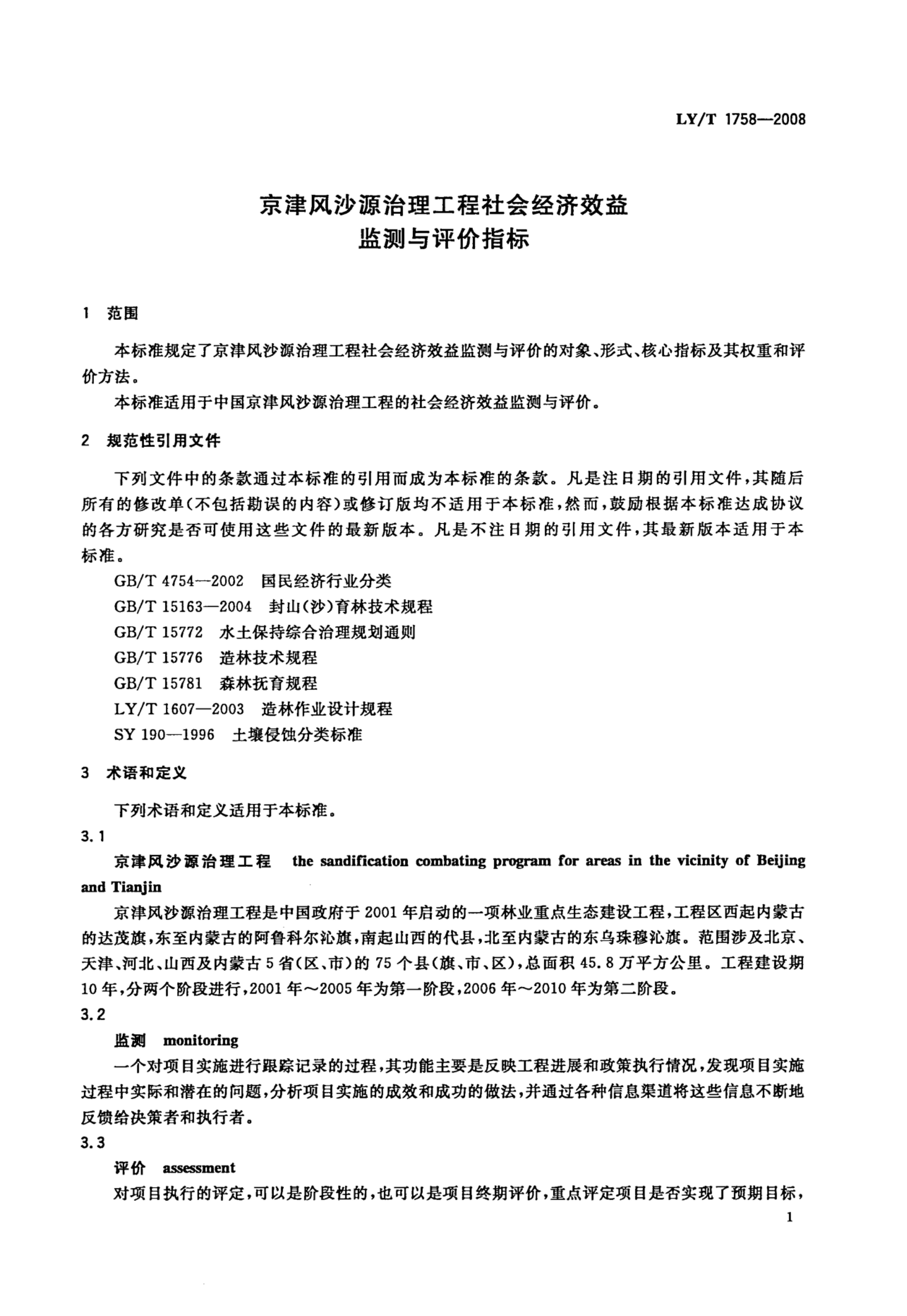 LY/T 1758-2008 京津风沙源治理工程社会经济效益监测与评价指标