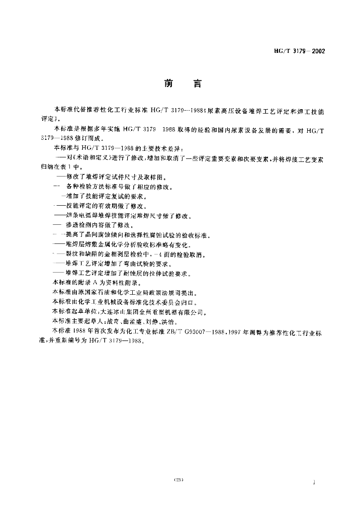 HG/T 3179-2002 代替 HG/T 3179-1988 尿素高压设备堆焊工艺评定和焊工技能评定