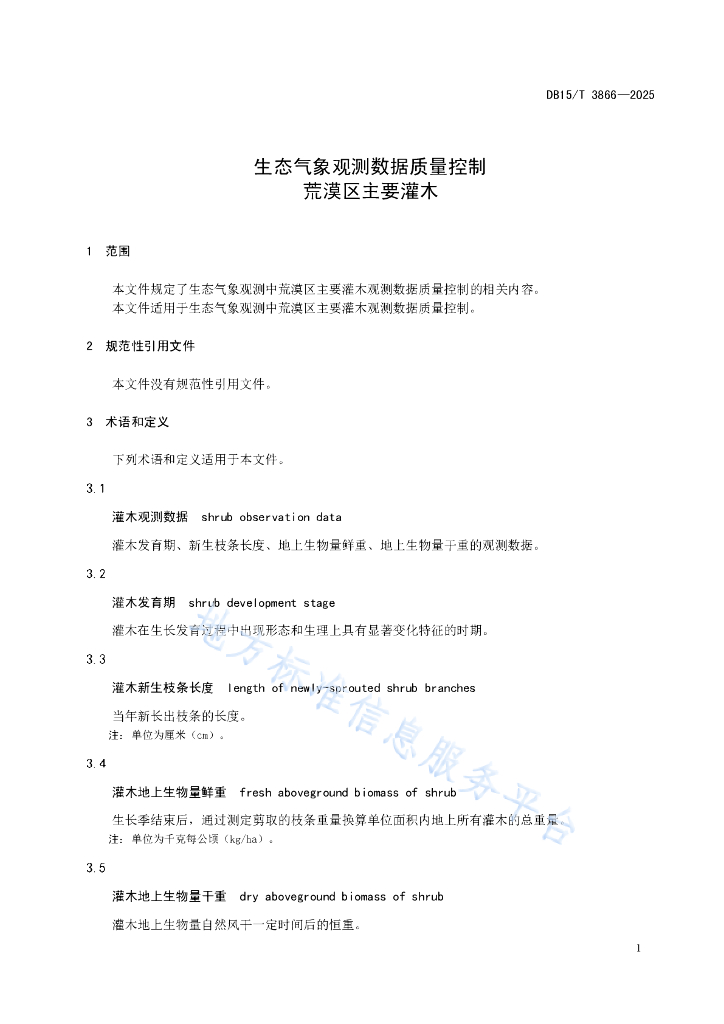 DB15/T 3866-2025 生态气象观测数据质量控制 荒漠区主要灌木