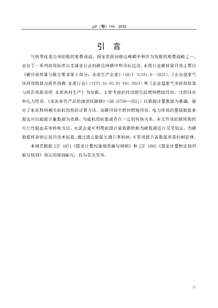 JJF(鄂)144-2025 水泥企业能源计量数据转换为碳排放数据计量规范
