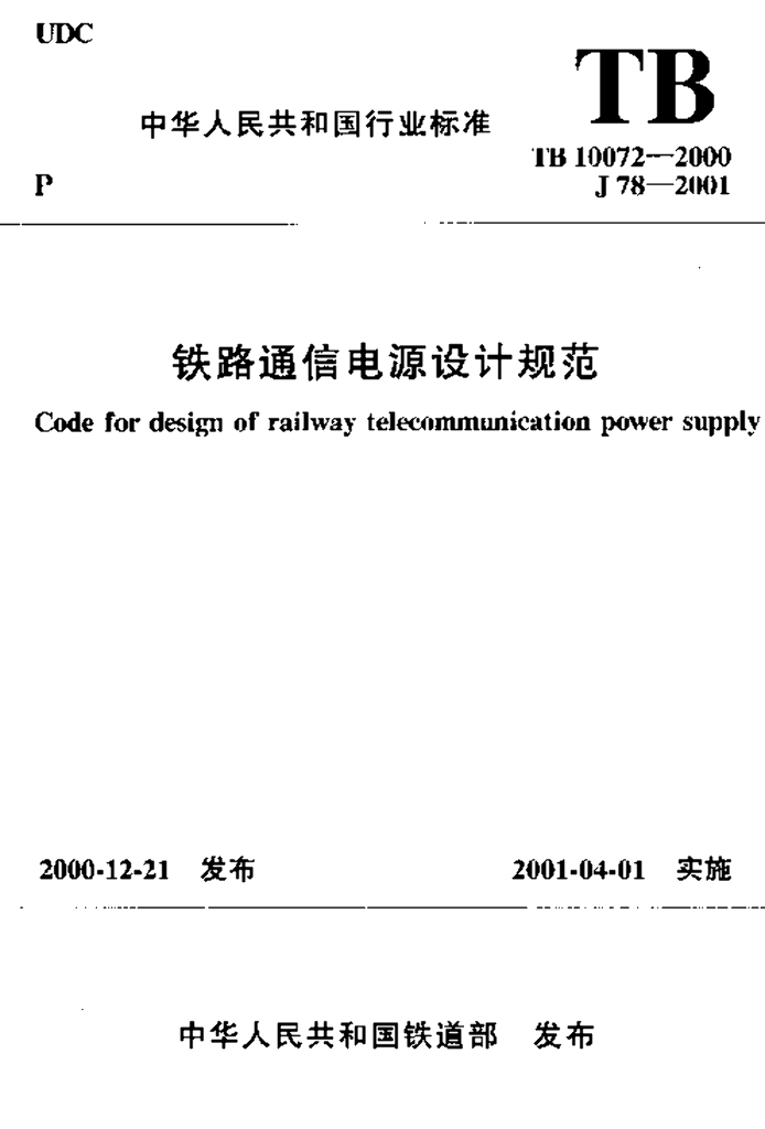 TB 10072-2000 铁路通信电源设计规范