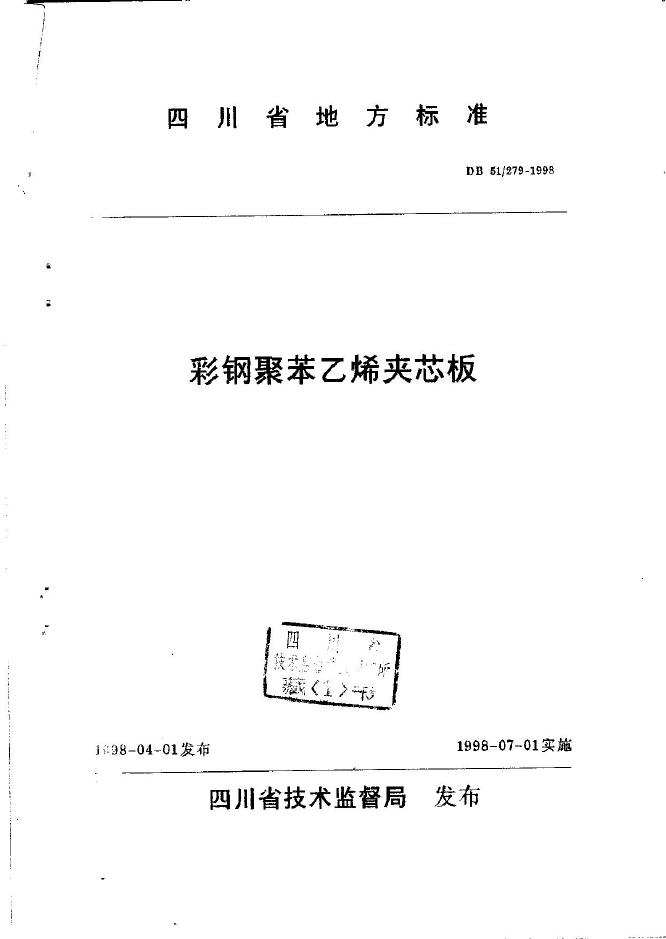 DB51/ 279-1998 彩钢聚苯乙烯夹芯板