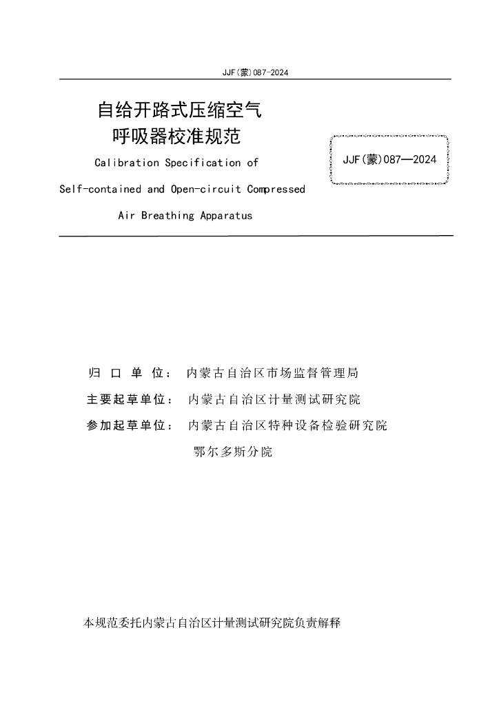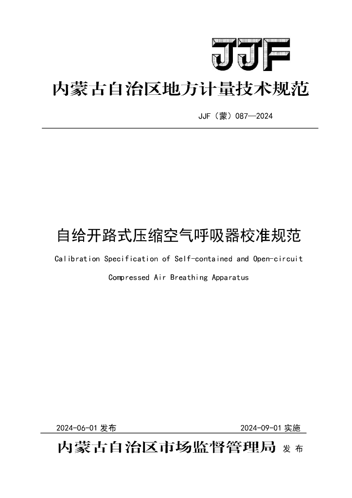 JJF(蒙)087-2024 自给开路式压缩空气呼吸器校准规范
