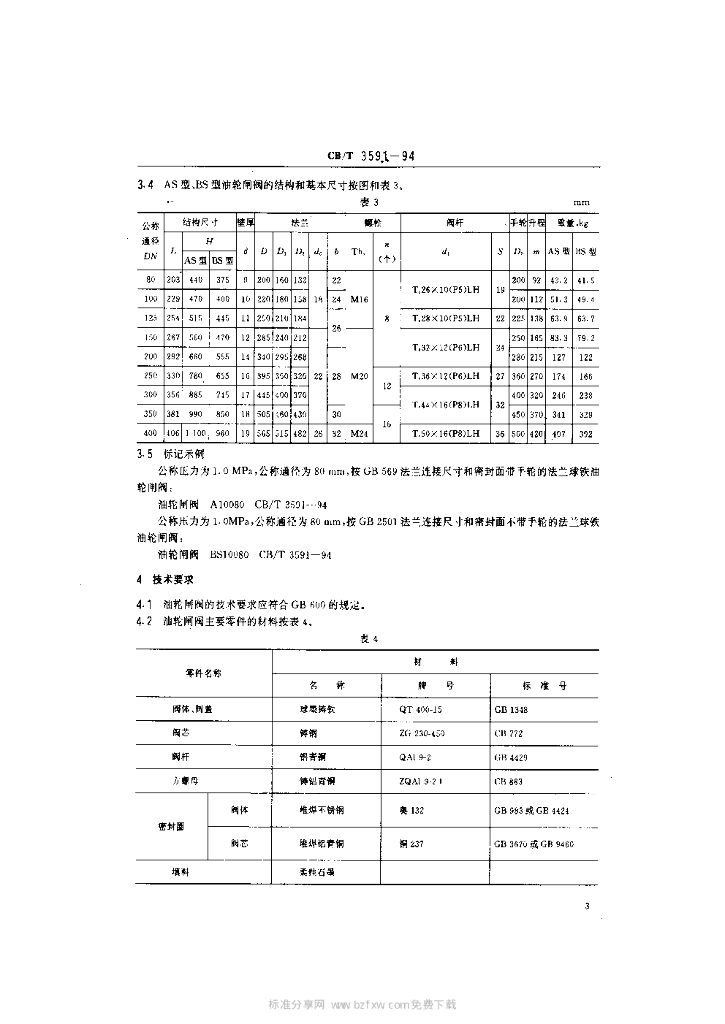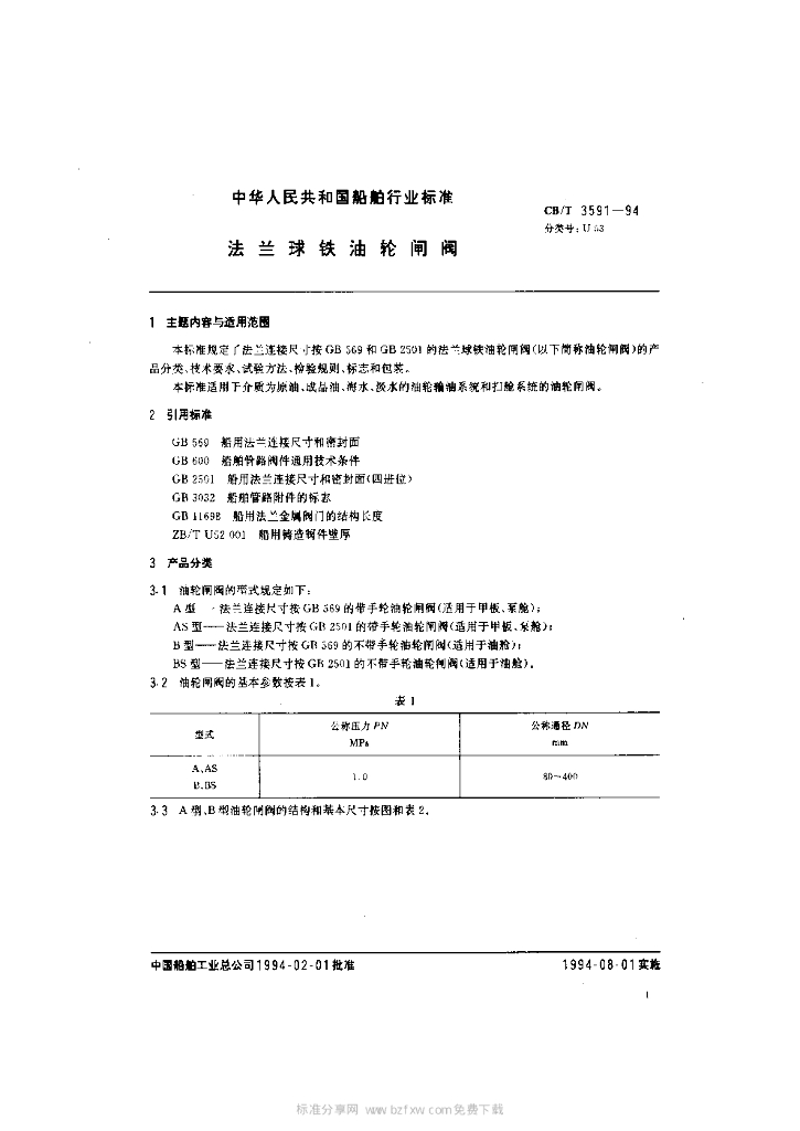 CB/T 3591-1994 法兰球铁油轮闸阀
