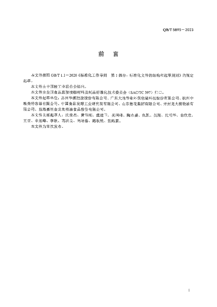 苏州华源控股股份有限公司、广东大地伟业环保包装科技股份有限公司、杭州中粮美特容器有限公司、中国食品发酵工业研究院有限公司、山东鲁花集团有限公司、开封龙大植物油有限公司、益海嘉里金龙鱼粮油食品股份有限公司