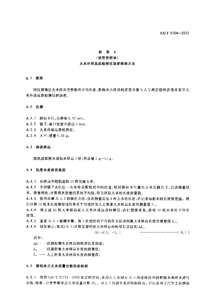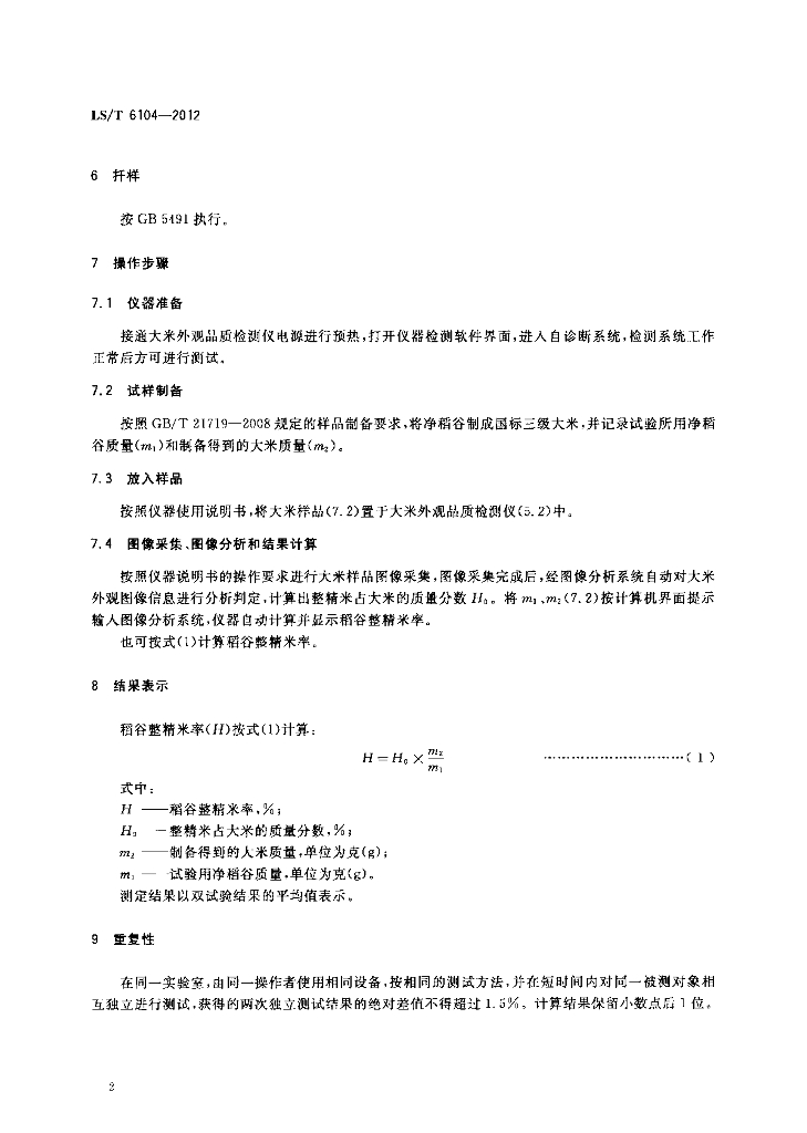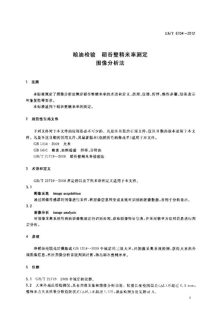 LS/T 6104-2012 粮油检验 稻谷整精米率测定 图像分析法