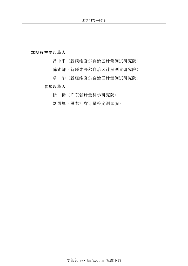 吕中平(新疆维吾尔自治区计量测试研究院)、陈武卿(新疆维吾尔自治区计量测试研究院)、卓华(新疆维吾尔自治区计量测试研究院)、徐标(广东省计量科学研究院)、刘国峰(黑龙江省计量检定测试院)