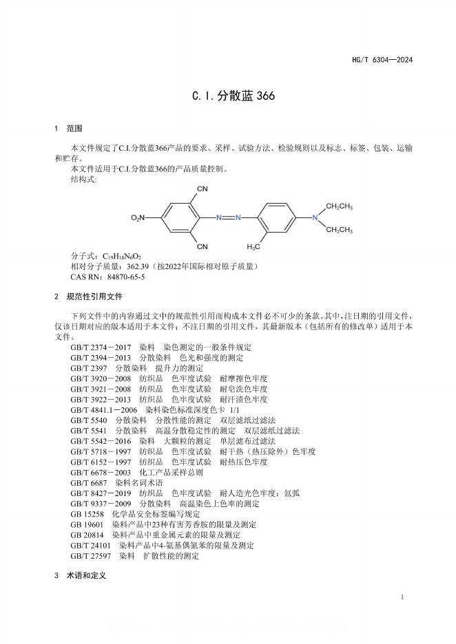 HG/T 6304-2024 C.I.分散蓝366
