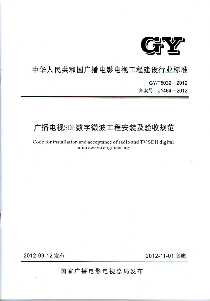 GY/T 5032-2012 广播电视SDH数字微波工程安装及验收规范