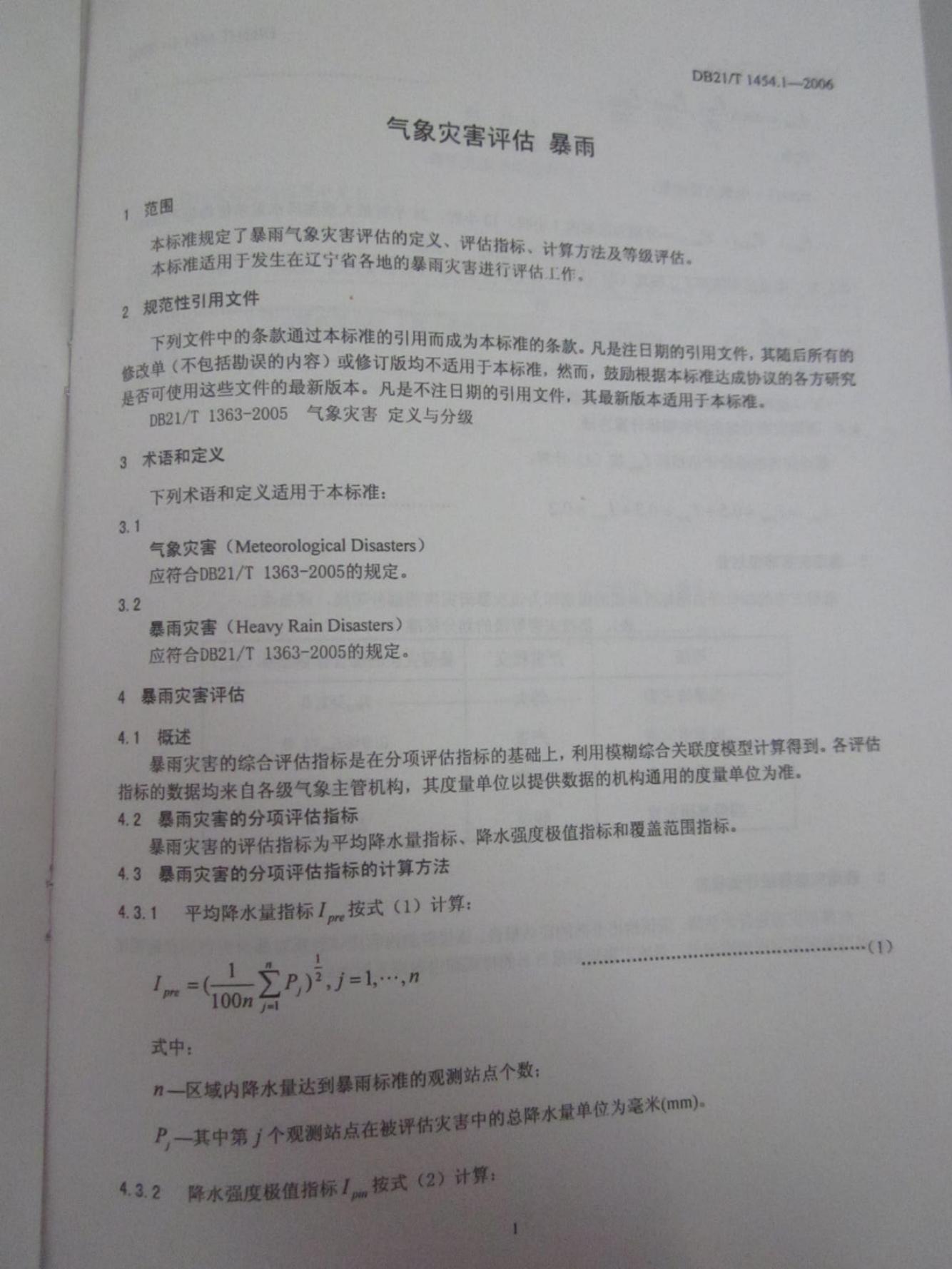 DB21/T 1454.1-2006 气象灾害评估 第1部分:暴雨