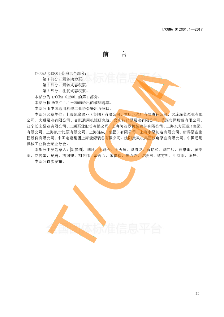 上海凯泉泵业(集团)有限公司、重庆水泵厂有限责任公司、大连深蓝泵业有限公司、大耐泵业有限公司、合肥通用机械研究院、嘉利特荏原泵业有限公司、蓝深集团股份有限公司、辽宁长志泵业有限公司、三联泵业股份有限公司、上海阿波罗机械股份有限公司、上海东方泵业(集团)有限公司、上海凯士比泵有限公司、上海连成(集团)有限公司、上海水泵制造有限公司、新界泵业集团股份有限公司、中国电建集团上海能源装备有限公司、沈阳鼓风机集团核电泵业有限公司、中国通用机械工业协会泵业分会