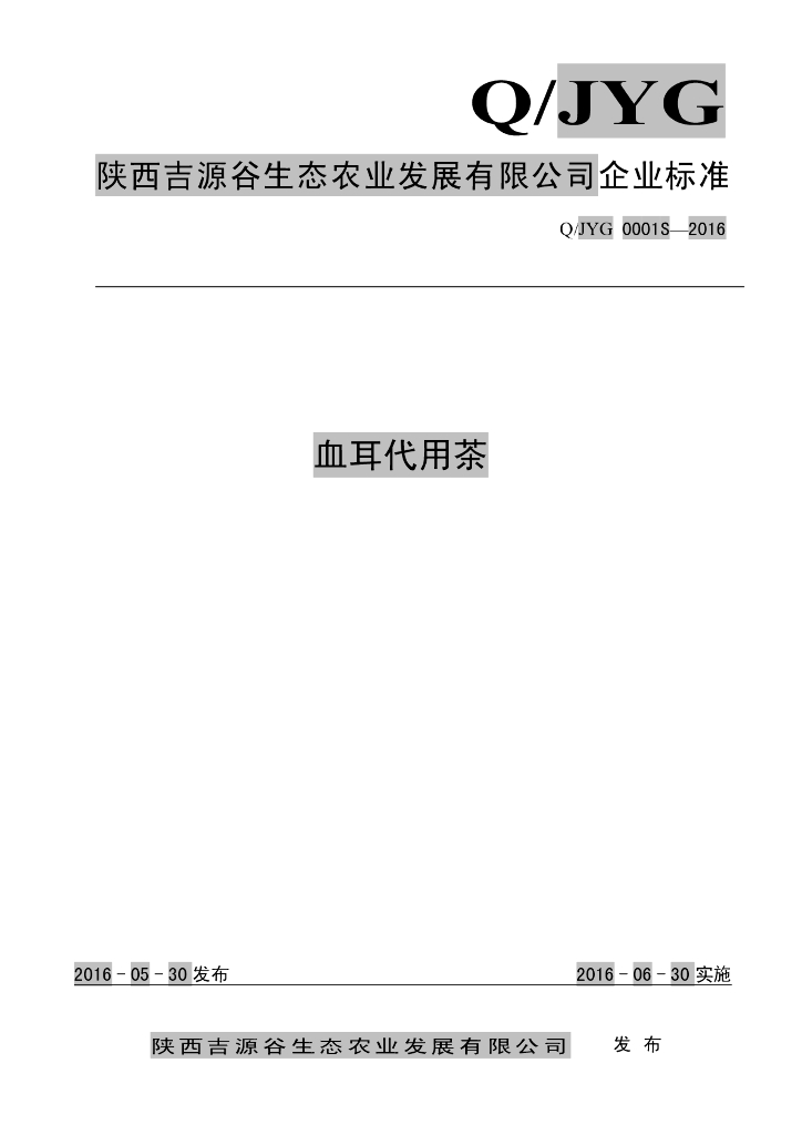 Q/JYG 0001S-2016 陕西吉源谷生态农业发展有限公司 血耳代用茶