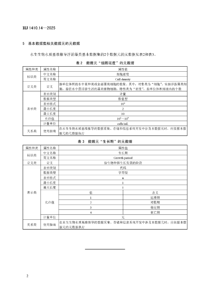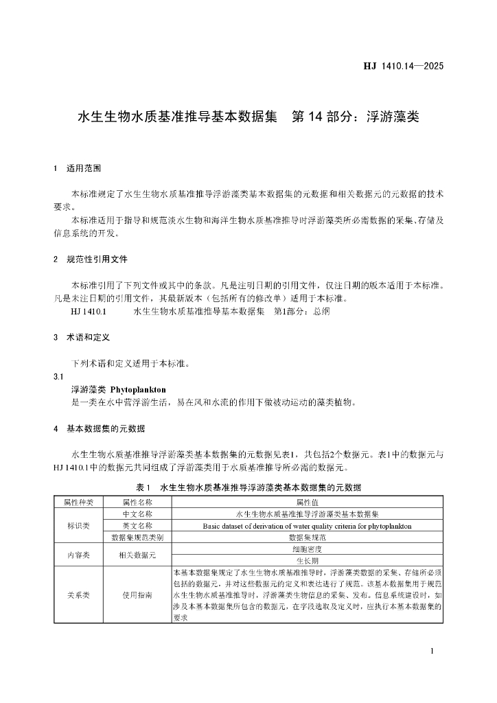 HJ 1410.14-2025 水生生物水质基准推导基本数据集 第14部分:浮游藻类