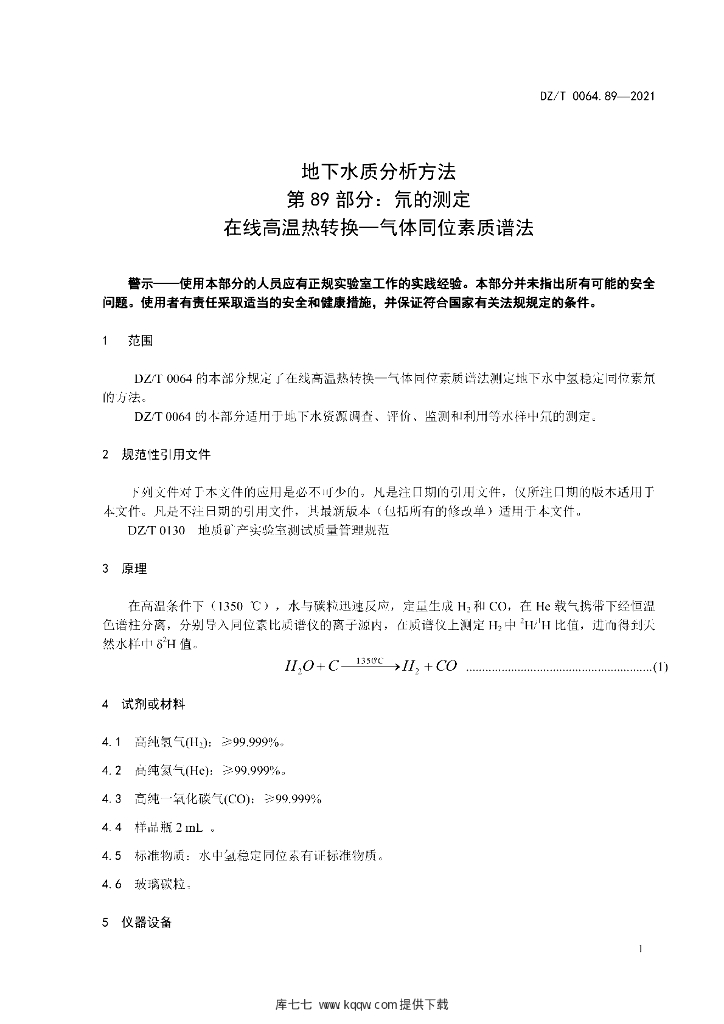 DZ/T 0064.89-2021 地下水质分析方法 第89部分:氘的测定在线高温热转换-气体同位素质谱法