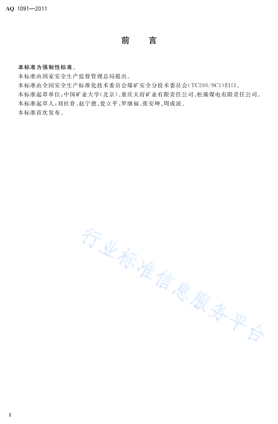 AQ 1091-2011 煤矿瓦斯抽采工安全技术培训大纲及考核要求