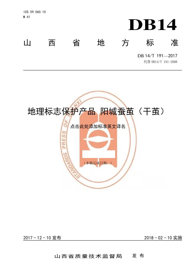 DB14/T 191-2017 地理标志产品 阳城蚕茧(干茧)