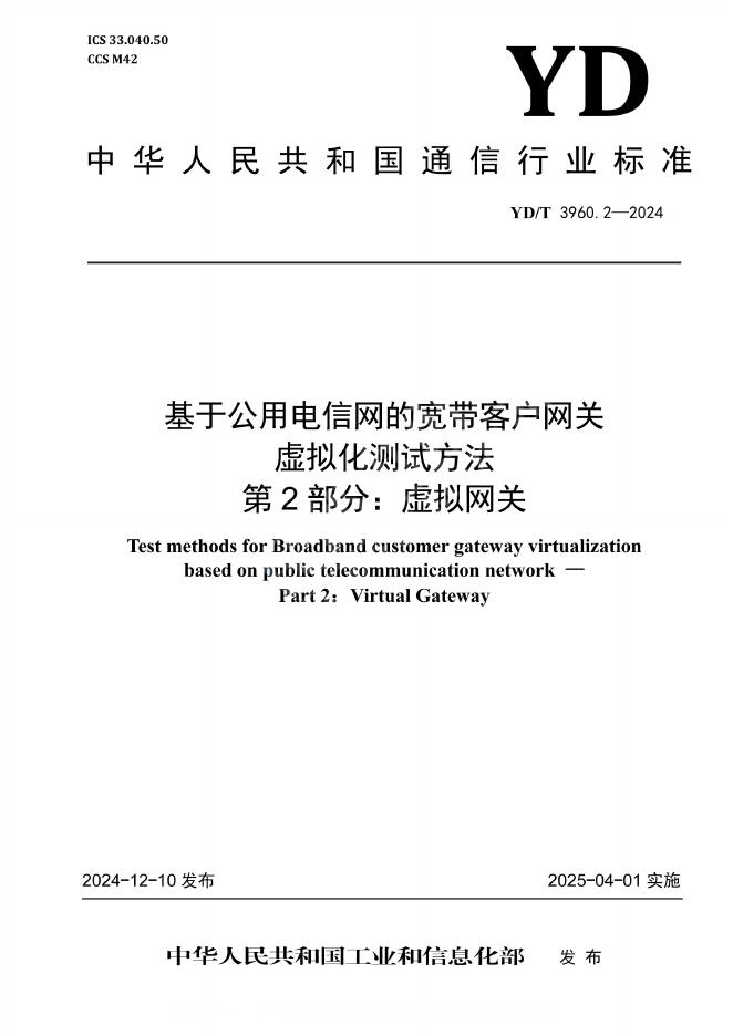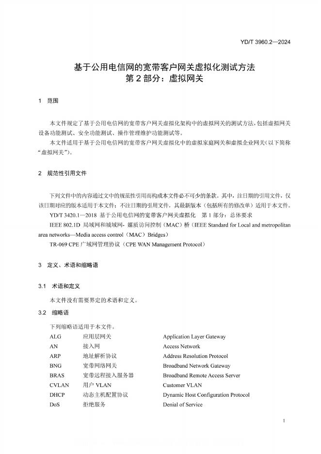 YD/T 3960.2-2024 基于公用电信网的宽带客户网关虚拟化测试方法 第2部分:虚拟网关