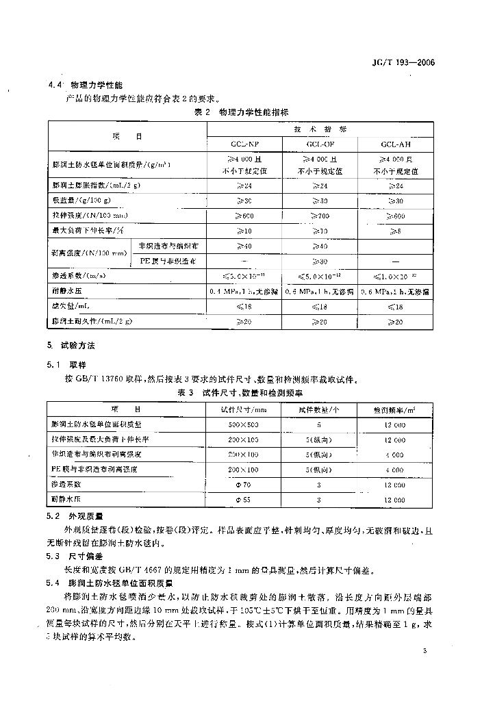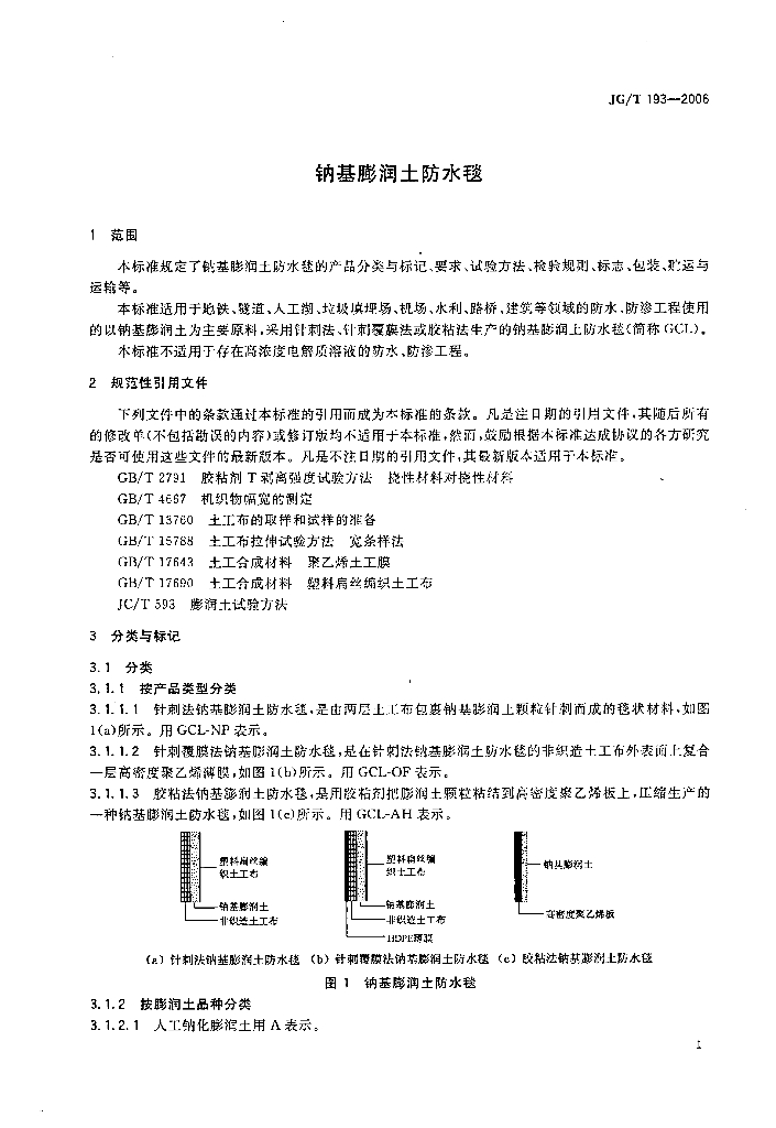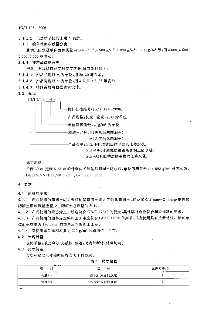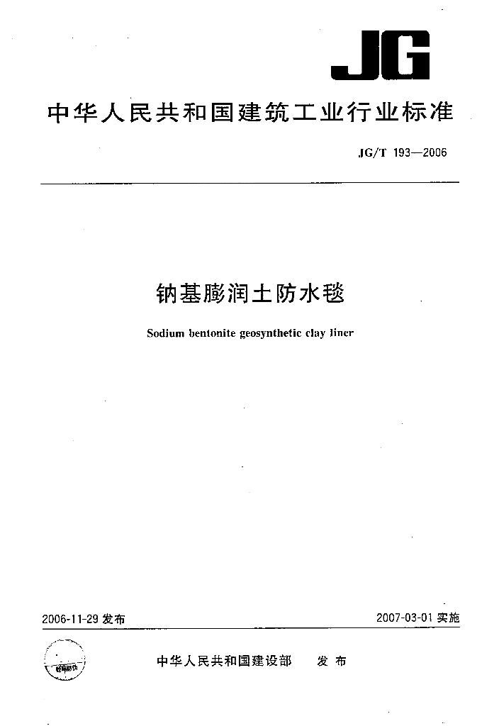 JG/T 193-2006 钠基膨润土防水毯