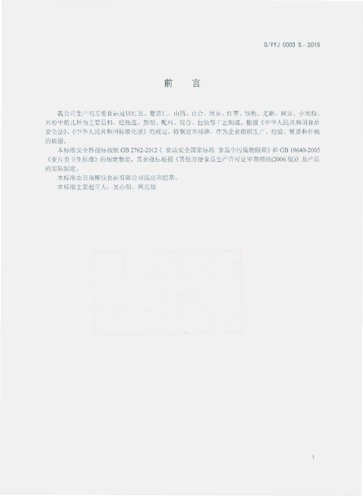 Q/YYJ 0003S-2015 云南椰佳食品有限公司 方便食品