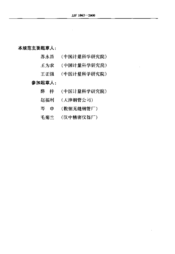 苏永昌(中国计量科学研究院)、王为农(中国计量科学研究院)、王正强(中国计量科学研究院)、薛梓(中国计量科学研究院)、赵福利(天津钢管公司)、岑申(鞍钢无缝钢管厂)、毛菊兰(汉中精密仪器厂)